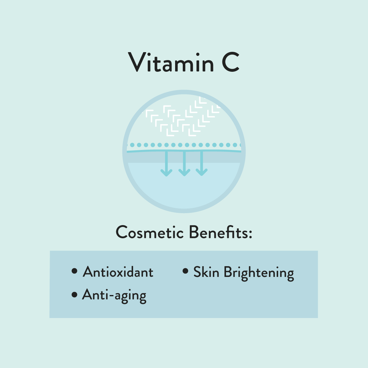Often referred to by its reduced form, ascorbic acid, vitamin C is a potent antioxidative molecule that protects skin from free radicals by reducing and neutralizing them. It also helps reduce the appearance of wrinkles by influencing collagen formation.