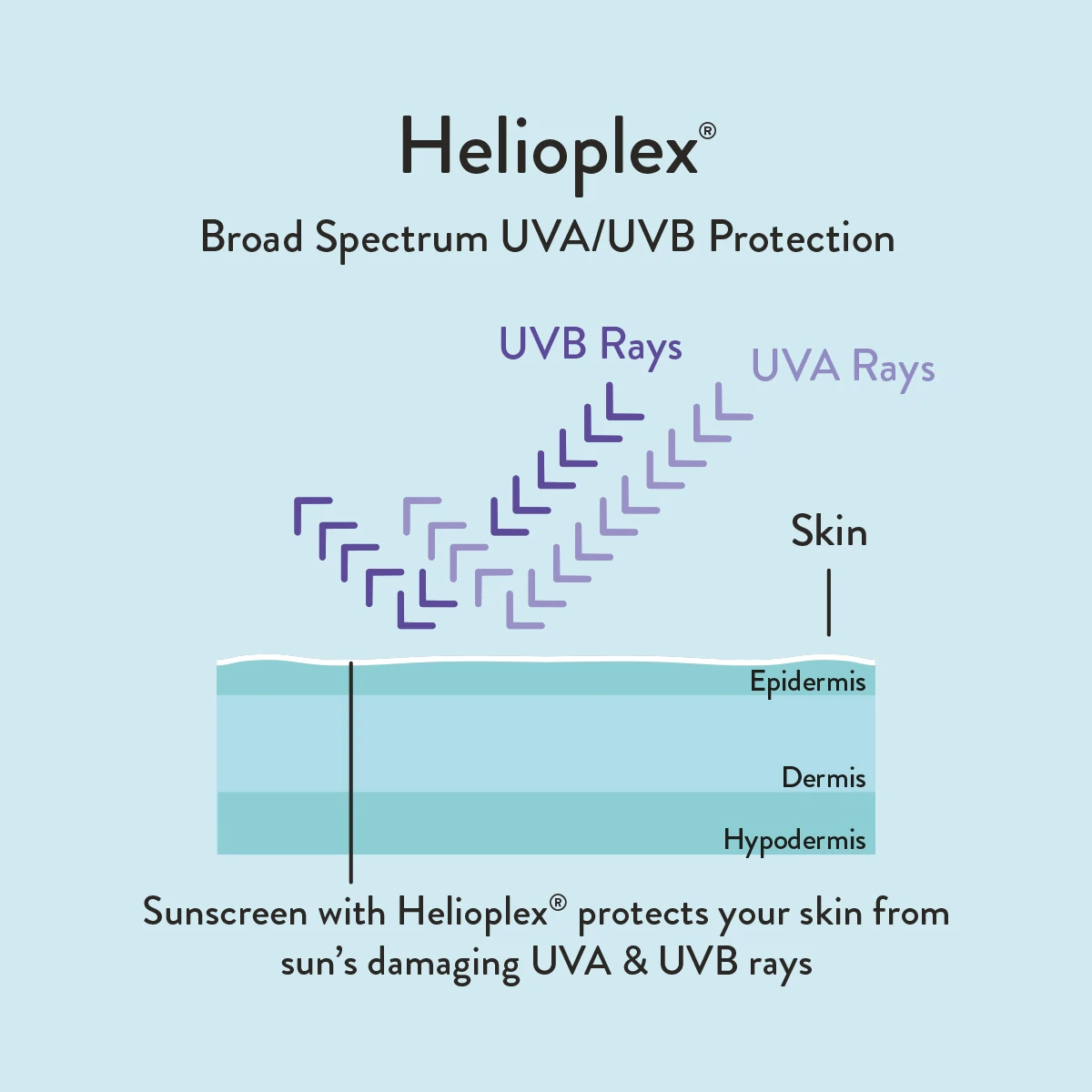 HELIOPLEX® Technology provides broad-spectrum protection against the sun’s UVA and UVB rays, which contribute to sunburn, premature aging, hyperpigmentation, and skin cancer. The active ingredients in sunscreens with HELIOPLEX® Technology don’t break down when exposed to the sun, giving wearers more effective protection.