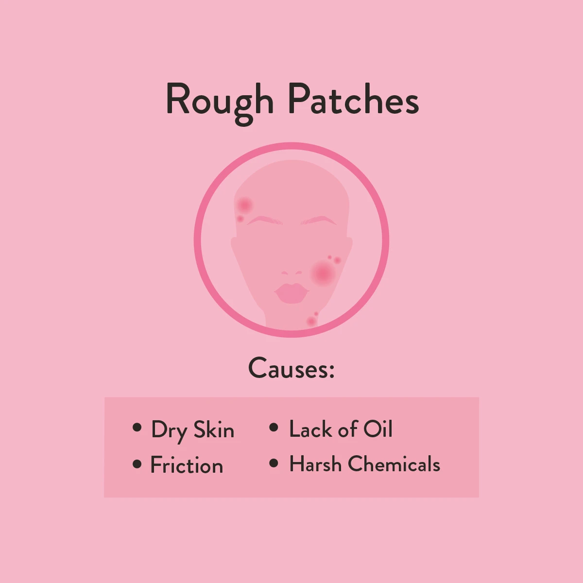 This term applies to areas of the skin that are dry, flaky, scaly, or bumpy. Common causes include dry skin, extreme weather conditions, blemishes, allergies, dermatitis, eczema, psoriasis, poor skincare practices, a weakened moisture barrier or even keratosis pilaris.