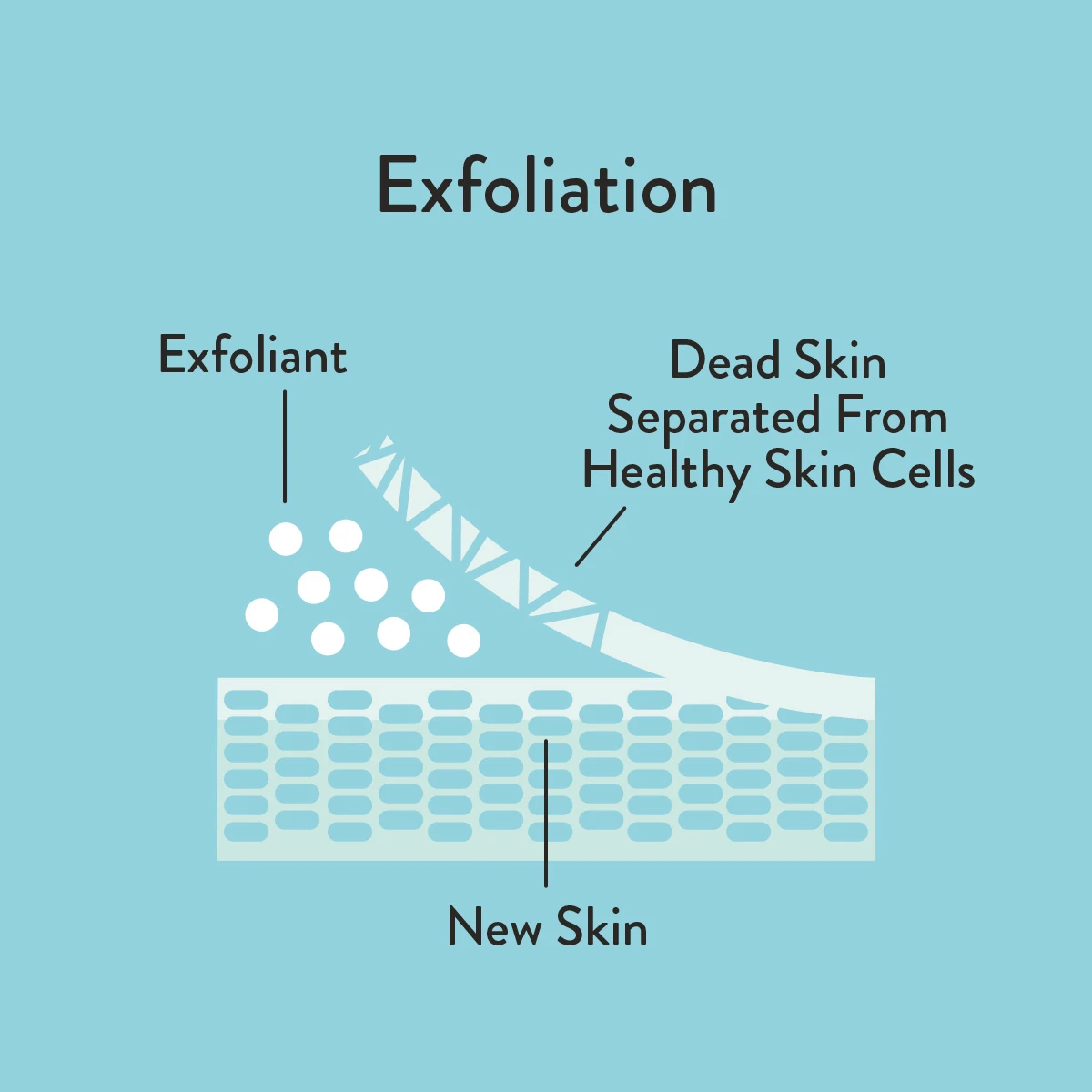 The process of removing dead cells from the skin’s surface to improve its appearance. It may be done physically by using a granular scrub to remove dead cells, or chemically by applying acids to loosen the bond between dead cells.