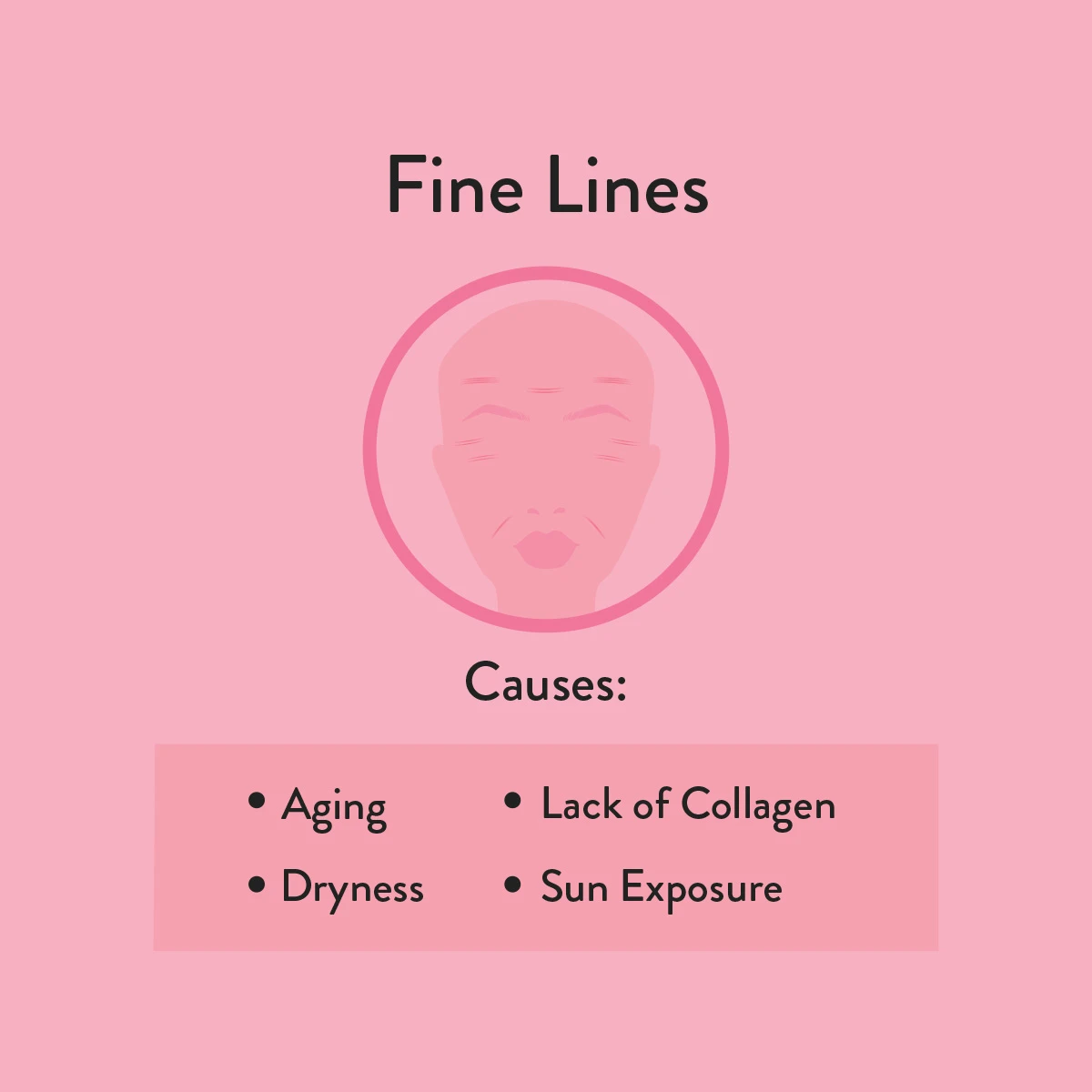 Linear markings that appear on the facial skin, typically in areas that show expression, such as the eyes and mouth. These occur naturally because of age and lifestyle habits (such as smoking) as well as over-exposure to UV rays and free radicals in the environment.