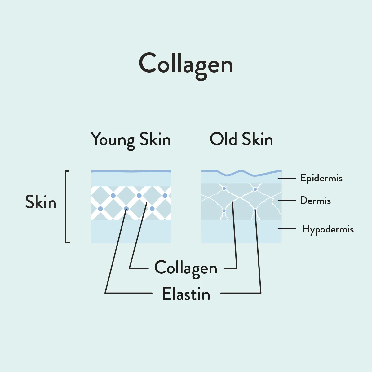 This is the most common protein found in the human body. It’s essential to forming your muscles, bones, and skin – as well as holding all these components together. As we age, we lose collagen, which is why it can be helpful to use products that help reduce the visual effects of decreased collagen production.