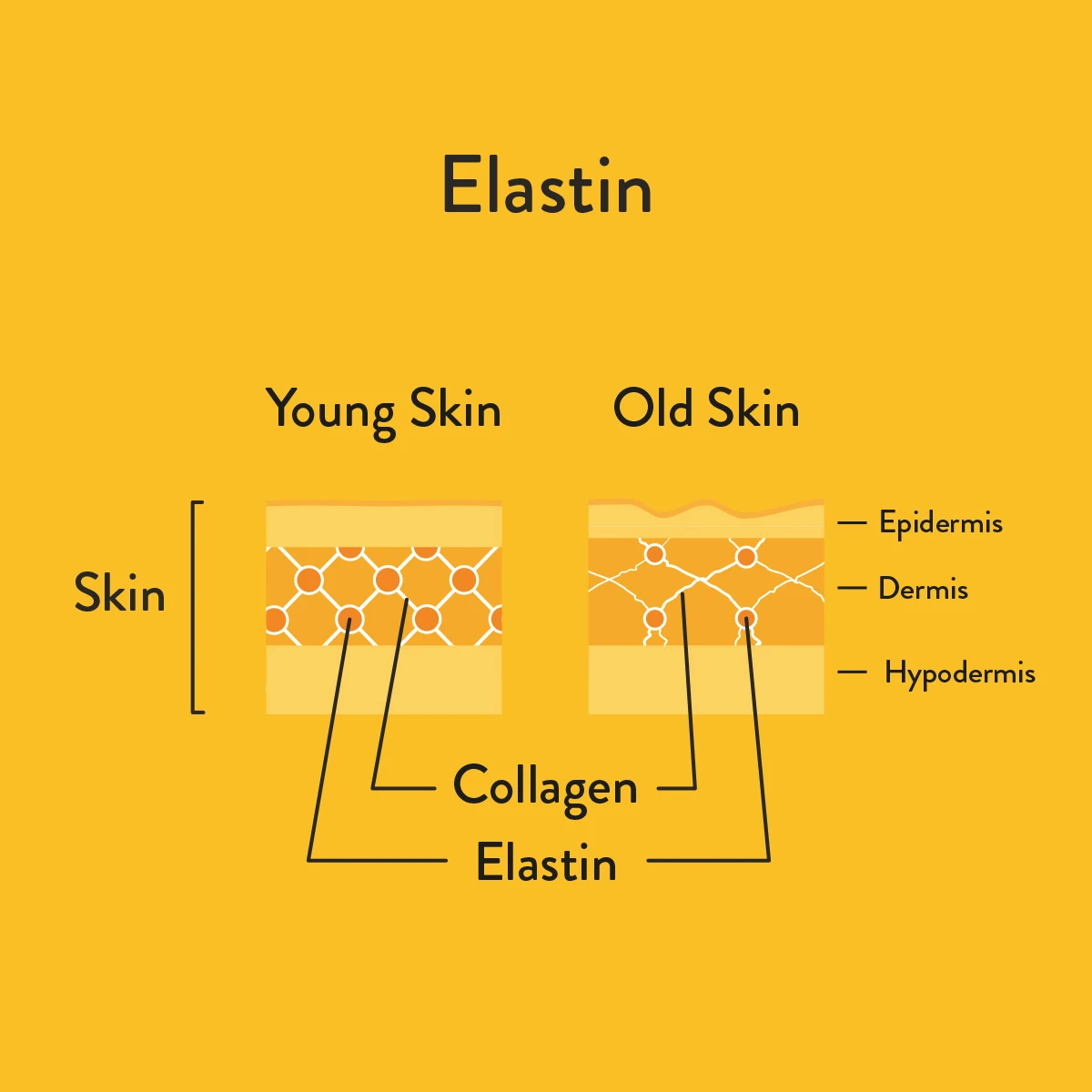 A protein found in skin and other connective tissues that has elastic properties. Like a rubber band, it allows skin to snap back to its original shape after being stretched – for example, when it is poked or pinched. Elastin is vital in preventing wrinkles and sagging.